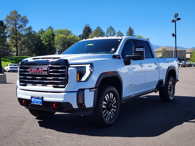 CARFAX 1-Owner. PRICE DROP FROM $72,774. Heated Leather Seats, NAV, Tow Hitch, Heated Rear Seat, 4x4, Turbo, Alloy Wheels, Bed Liner, AUDIO SYSTEM, 13.4 DIAGONAL PREMIUM GMC INFOTAINMENT SYSTEM, AT4 PREFERRED PACKAGE CLICK NOW!KEY FEATURES INCLUDELeather Seats, Heated Driver Seat, Heated Rear Seat GMC AT4 with Summit White exterior and Jet Black with Kalahari accents interior features a 8 Cylinder Engine with 401 HP at 5200 RPM*.OPTION PACKAGESENGINE, DURAMAX 6.6L TURBO-DIESEL V8, B20-DIESEL COMPATIBLE (470 hp [350.5 kW] @ 2800 rpm, 975 lb-ft of torque [1322 Nm] @ 1600 rpm) (Includes (K05) engine block heater.), ASSIST STEPS, POWER-RETRACTABLE, BLACK includes LED lighting, TECHNOLOGY PACKAGE includes (DRZ) Rear Camera Mirror and (UV6) Multicolor 15 Diagonal Head-Up Display, AT4 PREFERRED PACKAGE includes (UG1) Universal Home Remote, (A48) rear sliding power window, (U01) Roof Marker Lamps and (KSG) adaptive Cruise Control, AUDIO SYSTEM, 13.4 DIAGONAL PREMIUM GMC INFOTAINMENT SYSTEM with Google built in apps such as navigation and voice assistance, includes color touch-screen, multi-touch display, AM/FM stereo, Bluetooth streaming audio for music and most phones; featuring wireless Android Auto and Apple CarPlay capability for compatible phones. (STD), TRANSMISSION, ALLISON 10-SPEED AUTOMATIC. 4x4, Onboard Communications System, Aluminum Wheels, Privacy Glass, Keyless Entry, Steering Wheel Controls, Heated Mirrors.EXCELLENT VALUEWas $72,774.BUY WITH CONFIDENCECARFAX 1-OwnerOUR OFFERINGSWe have been providing quality Buick and GMC service in Colorado for nearly 40 years! We were built with our customers in mind, and want to provide nothing but the best possible customer service in the auto industry. Ferguson Buick GMC serves customers from Denver, Colorado Springs, Pueblo and beyond. We take ANYTHING on Trade!Pricing analysis performed on 10/14/2025. Horsepower calculations based on trim engine configuration. Please confirm the accuracy of the included equipment by calling us prior to purchase.